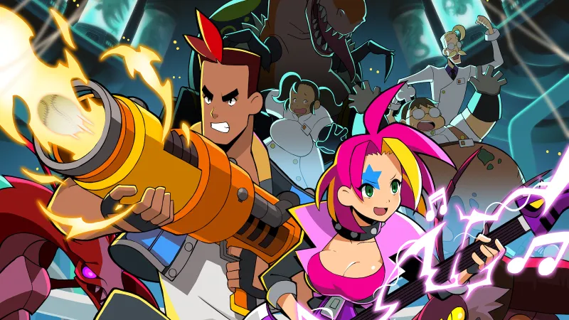 “[It’s] up to punk rocker Victoria and officer-in-training Adrian to run, jump, climb, and shoot their way through multiple levels of over-the-top, high-octane mayhem,” WayForward writes. “Armed with an assortment of character-specific weapons (including Victoria’s Metal Spread and Electronica Chain, and Adrian’s Flame Thrower and Rebound Breaker) and special Spidersaur powers, players must navigate the INGESTCorp facility and put a stop to the mindless army of genetically engineered monsters.”Click here to view embedded media